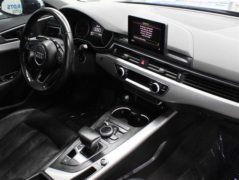Clean Title!Moonlight Blue 2017 Audi A4 2.0T ultra Premium FrontTrak 7-Speed Automatic S tronic 2.0L I4 TFSI DOHC 150 Point Inspection, 7-Speed Automatic S tronic, Black Leather, 10 Speakers, 4-Wheel Disc Brakes, 8-Way Power Front Seats w/Driver Memory, ABS brakes, Air Conditioning, Alloy wheels, AM/FM radio, Anti-Theft Alarm System w/Immobilizer, Anti-whiplash front head restraints, Audi Advanced Key, Audi Connect PRIME & PLUS, Audi First Aid Kit, Audi Virtual Cockpit, Auto-dimming Rear-View mirror, Automatic temperature control, Brake assist, Bumpers: body-color, CD player, Compass, Convenience Package, Delay-off headlights, Driver door bin, Driver vanity mirror, Dual front impact airbags, Dual front side impact airbags, Electronic Stability Control, Exterior Parking Camera Rear, Four wheel independent suspension, Front anti-roll bar, Front Bucket Seats, Front Center Armrest, Front dual zone A/C, Front fog lights, Front reading lights, Garage door transmitter: HomeLink, Heated Auto-Dimming Power Exterior Mirrors w/Memory, Heated door mirrors, Heated Front Seats, High intensity discharge headlights: Xenon plus, Illuminated entry, Knee airbag, Leather Seating Surfaces, Leather Shift Knob, Leather steering wheel, Low tire pressure warning, Occupant sensing airbag, Outside temperature display, Overhead airbag, Overhead console, Panic alarm, Passenger door bin, Passenger vanity mirror, Power door mirrors, Power driver seat, Power Front Bucket Seats, Power moonroof, Power passenger seat, Power steering, Power windows, Radio data system, Radio: Audi MMI Navigation Plus w/MMI Touch, Radio: Audi Sound System, Rain sensing wipers, Rear air conditioning, Rear anti-roll bar, Rear fog lights, Rear reading lights, Rear seat center armrest, Rear window defroster, Remote keyless entry, SiriusXM Satellite Radio, Speed control, Speed-sensing steering, Speed-Sensitive Wipers, Split folding rear seat, Steering wheel mounted audio controls, Tachometer, Telescoping steering wheel, Tilt steering wheel, Traction control, Trip computer, Turn signal indicator mirrors, USB Cables, Variably intermittent wipers, Wheels: 7.5" x 17" 5-Parallel Spoke Design, 7-Speed Automatic S tronic, Black Leather.27/37 City/Highway MPGAwards: * JD Power Automotive Performance, Execution and Layout (APEAL) Study * 2017 KBB.com 10 Favorite New-for-2017 Cars * 2017 KBB.com Best Buy AwardsReviews: * Cabin looks cool and is impeccably constructed; cutting-edge safety and technology features; backseat is spacious enough for adults; user-friendly tech interface; turbocharged engine provides quick acceleration. Source: EdmundsAt Gerdts Auto, we allow you to fall in love with your next pre-owned vehicle in a low-pressure, stress-free environment. We are a haggle-free dealership committed to offering our customers the lowest pricing possible up front. Appointments are strongly encouraged so we can provide you with the best buying experience possible. FINANCING- We offer financing for our customers through a variety of Banks and Credit Unions to provide our customers with the lowest rates possible. We work with a full spectrum of lenders for all credit types. SERVICE CONTRACTS- We pride ourselves in providing the highest coverage at the lowest price possible. We work EXCLUSIVELY with local companies that we know and trust. Bumper to bumper policies are available with nationwide coverage being standard. VIEW OUR COMPLETE INVENTORY ONLINE: https://www.gerdtsauto.com/used-cars Gerdts Auto 12541 South Minutemen Dr. Draper UT,84020.